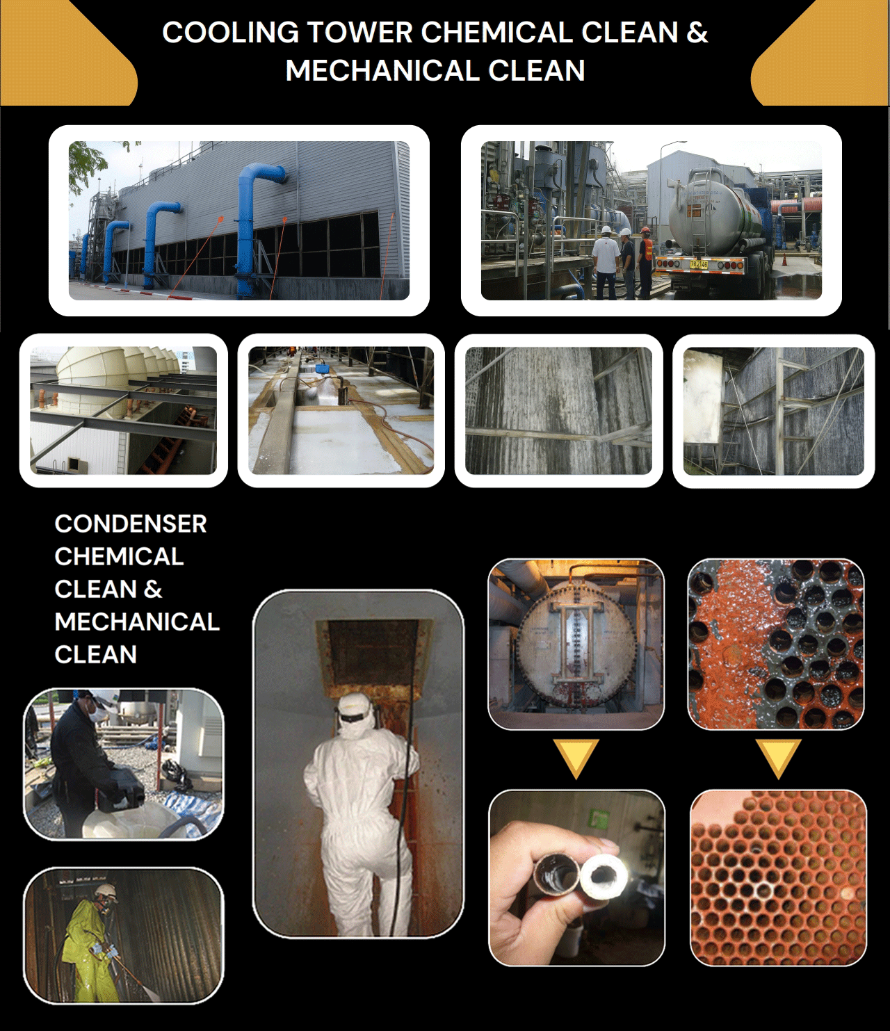 SUPPLIER OF BOTH SERVICE Comprehensive provider of both Water Treatment and Chemical Cleaning, covering the supply of industrial-grade chemicals and on-site maintenance services by experienced engineers and water system specialists.